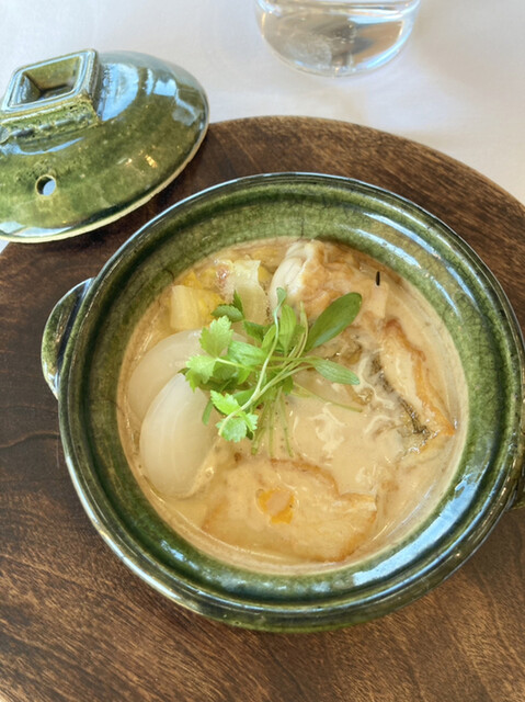白身魚に白子♡❗️冬の白菜や蕪なんかのお野菜が、しっーっかりクリーミーで濃厚なソースに浸かっておりました✨