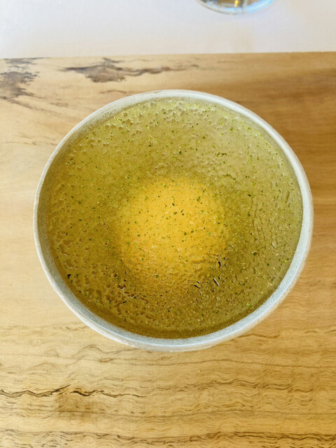 飴細工にはこぶみかんの皮が入れられて割ってソルベといただくと、良き爽やかさと甘味♡