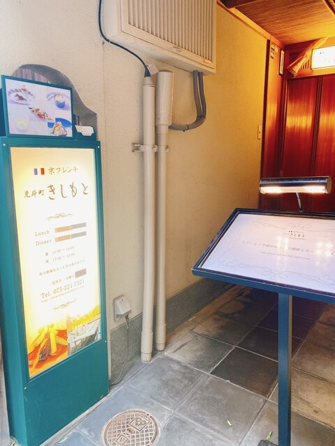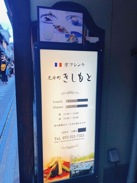 先斗町の通り沿いにある、趣深い老舗感たっぷりのフレンチきしもとさん。店構えも風格ある佇まいです。