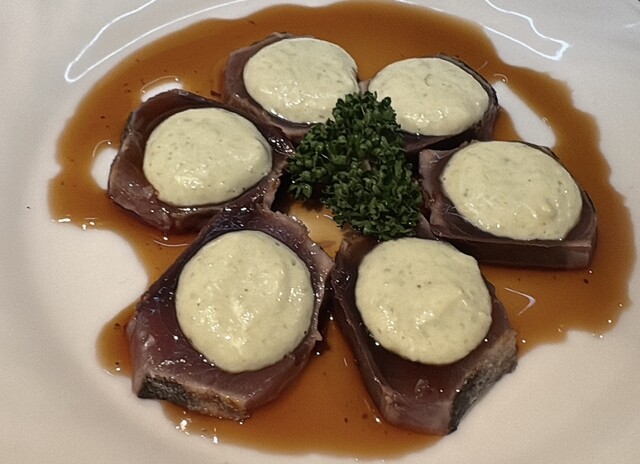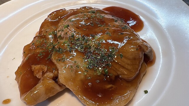 もう閉店間近だったので軽く3品だけでしたが、特に牛タンシチューは絶品‼︎このフォルムは見たことないと度肝を抜かれたのと余りの美味しさに先に4軒食べてきたことを後悔↓