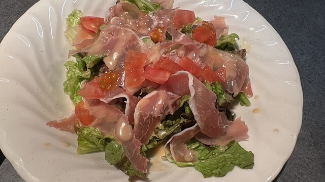 あとビックリなのは、生ハムサラダ。オーソドックスな見た目からは想像できないドレッシングの旨さ。何が調合されてるのか教えて欲しい程ww