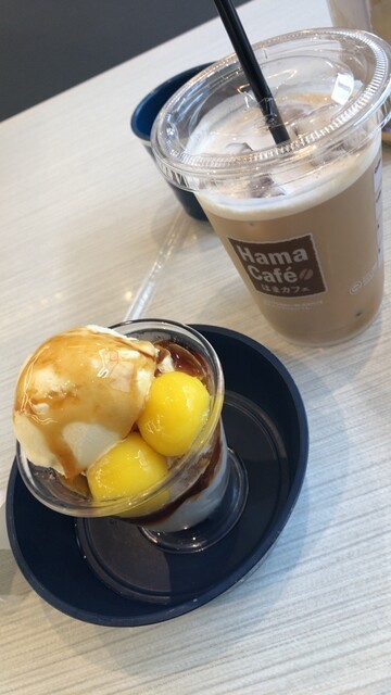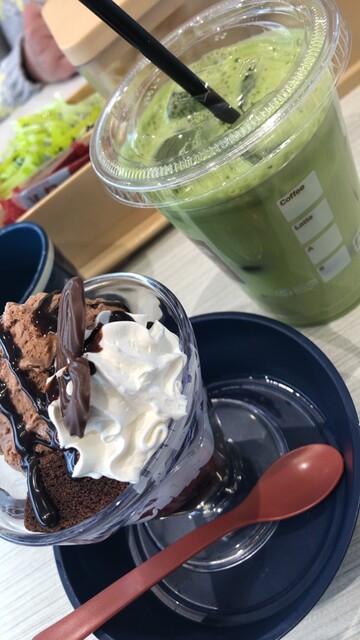 食後のデザートは、バナナのパルフェとアイスラテのMサイズを。