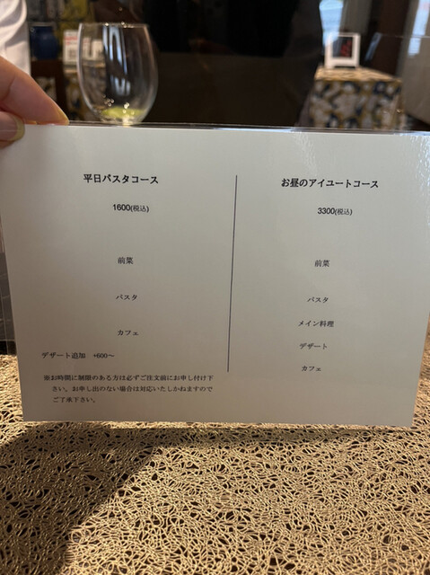 2200円のコースは、前菜、パスタ、ドルチェ、カフェ。