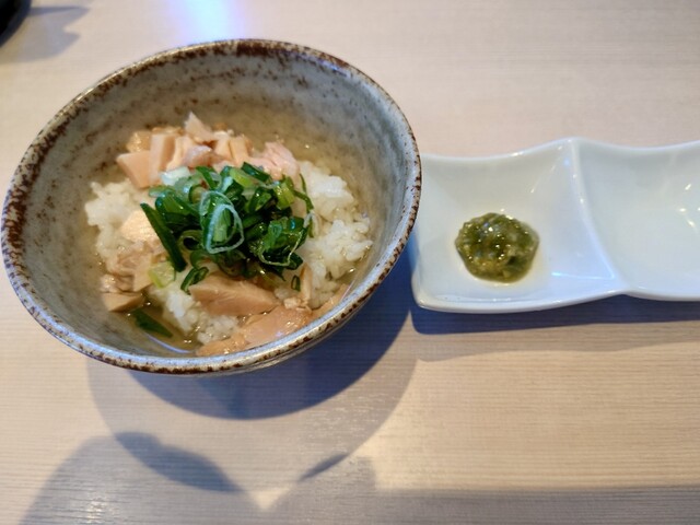 鶏茶漬けは鶏出汁とチャーシューの塩味デモ良かったがわさび漬けを後入れ美味しかったです。