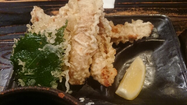 鶏ささみ天はレモンをかけて食べるのですが、身は柔らかくて味は優しい薄味。