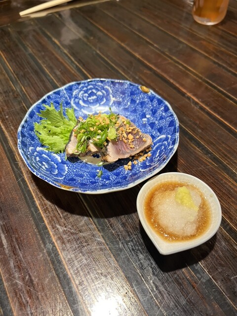 戻りカツオ桜たたき→普通の大根おろしとポン酢をかけて食べると美味しい!