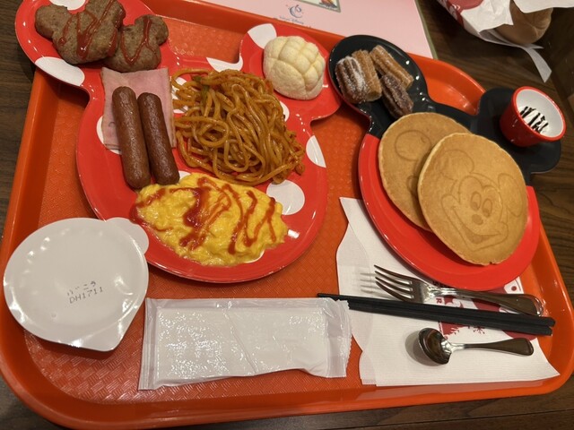 おすすめは、ミッキーマウスのパンケーキ。フルーツや生クリームで、デコれます。アイスもありました。