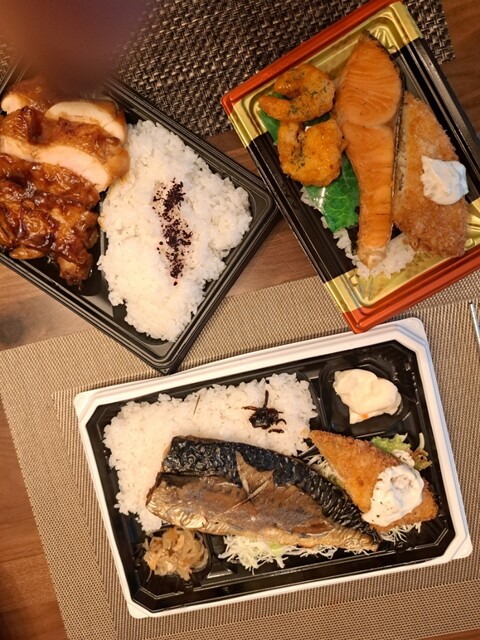 焼サバ弁当、チキンステーキ弁当、鮭弁当?