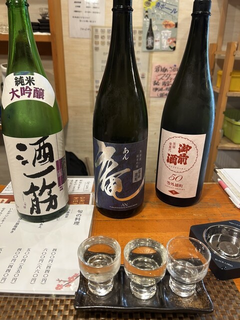 カウンターの目の前には、岡山の地酒がずらりと並び、日本酒好きにはたまらない光景。…とはいえ、私は日本酒にそこまで詳しくなく、岡山の地酒についても正直まったくの無知。それでも大丈夫。店員さんがカウンター越しに気さくに声をかけてくれ、「辛口が好きです」と伝えると、それに合った銘柄を丁寧にセレクトしてくれました。押しつけがましさや距離感の近すぎる感じもなく、ちょうどいい距離感で接客してくれるのも好印象。