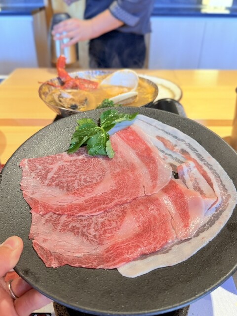 └旨味たっぷりの雲丹出汁に、和牛をしゃぶしゃぶ、、幸せ過ぎます。