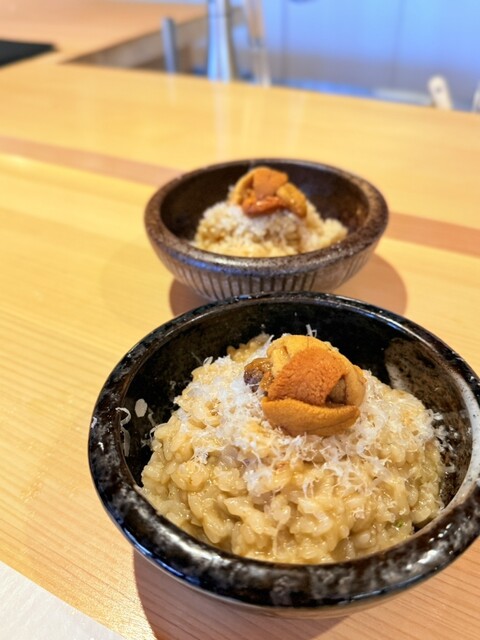 └具材を入れる前と入れた後で雲丹のお出汁を飲み比べできます。入れた後の美味さが半端なかった。