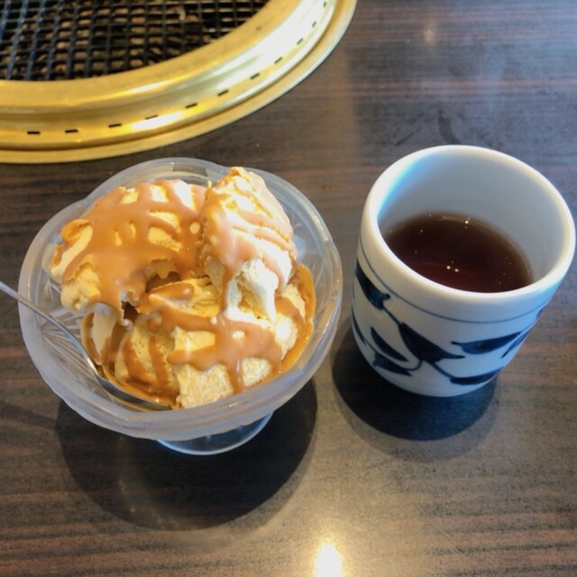 今日はリリー&サンドの合間の1人お疲れ会でランチに生に、白飯ではなく、ビビンバにシロを追加で頼みいざ網へ(^^)トロトロに焼けたシロは約束された旨さで含むと溶けてなくなっちゃいました 赤身も柔らかで旨味が濃いです シャキシャキわかめのスープに具材がたっぷりのビビンバ、バニラにパリパリキャラメルソースが掛かったアイスもバニラビーンズが豊富に入ってて焼肉の締めにバッチです