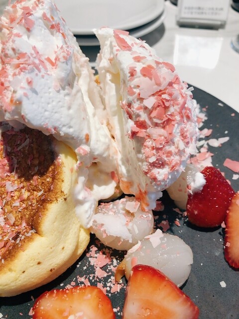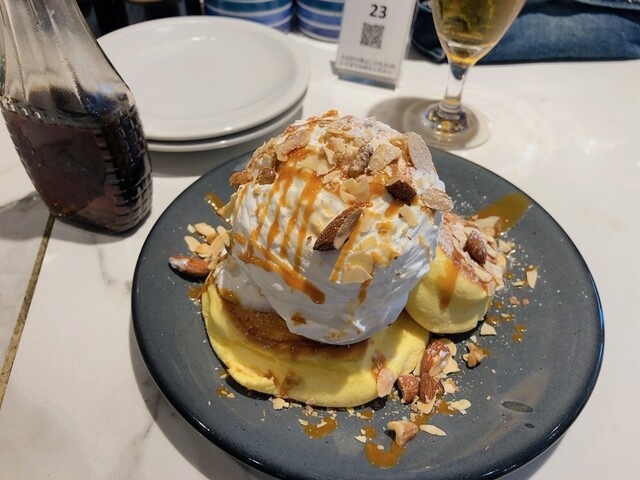 なんかしょっぱいものが食べたくマッシュポテトのチーズ焼き、マンゴーパンケーキ、アールグレイのレモンサワーを頼みました サワーは紅茶味が強く炭酸のシュワシュワが爽快〜