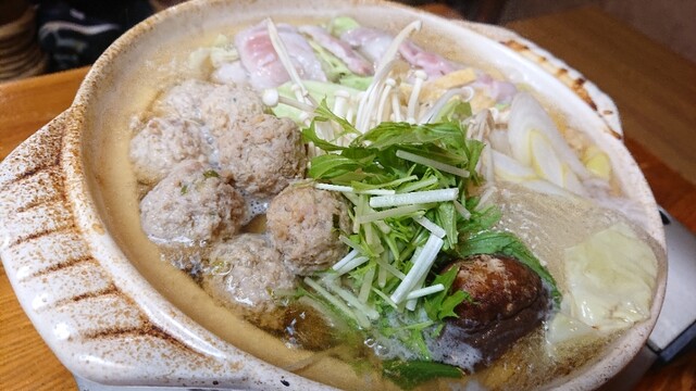 焼き鳥の 美味しい名店にての 1人鍋。1850円 ( つくね鍋 冬季限定。一人前 OK !)