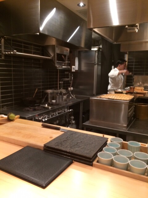 広いオープン厨房で働く料理人も 清潔感があり、好感が持てます。