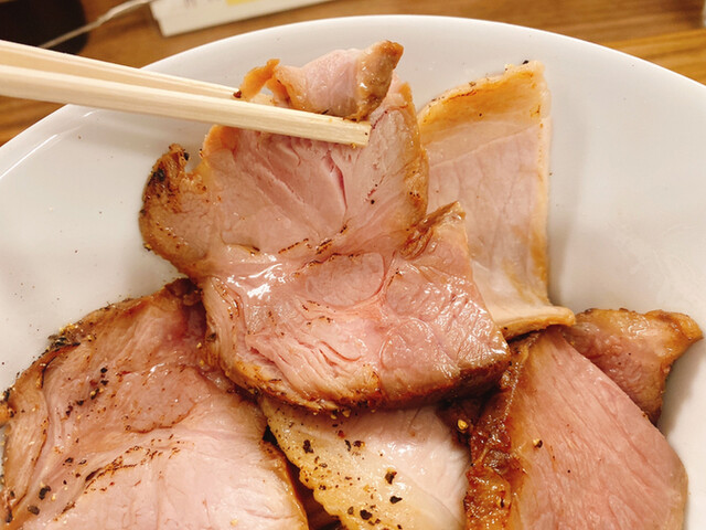 やっぱり美味しいチャーシューはトッピングしなかった自分をボコボコにしたい厚切りのレアタイプ、さすがお肉のプロレベルでございます♪( ´θ`)