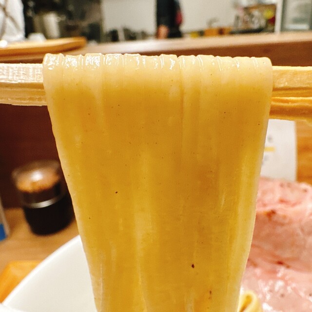 しっかり煮干し感が出ているスープはコクと旨味が凝縮した塩清湯、この染み渡る旨みがたまらんです♡