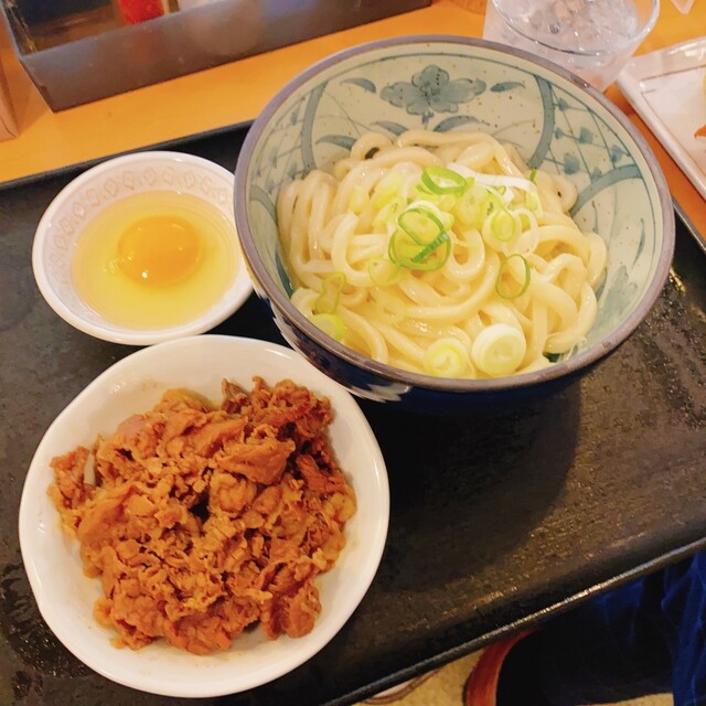 カレーうどん+肉トッピング+生卵を頂きました♪