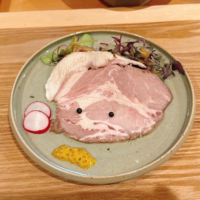 “うどんのお刺身”に“絶品ドレッシングなローストポーク”、絶妙な火入れのお豚さま♪