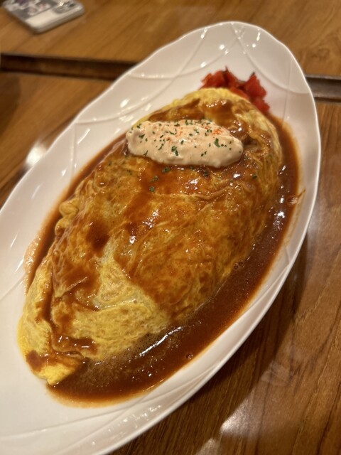 オムライスの概念が崩されるくらいに癖になります。何故か完食してしまうしふと食べたくなるオムライスです。