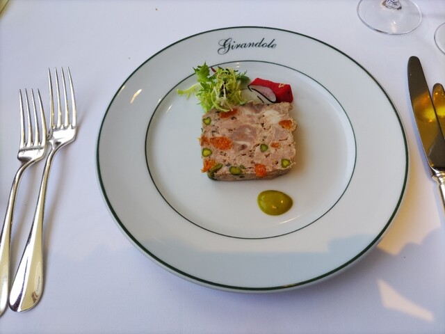 1品目はパテ・ド・カンパーニュ。アプリコットの酸味と豚肉の旨みが合わさり、とても美味しい仕上がりになっていました。味は割としっかりしていましたが、くどさや臭みを感じなかったのは、アプリコットが入っていたことが大きいのではないかと。