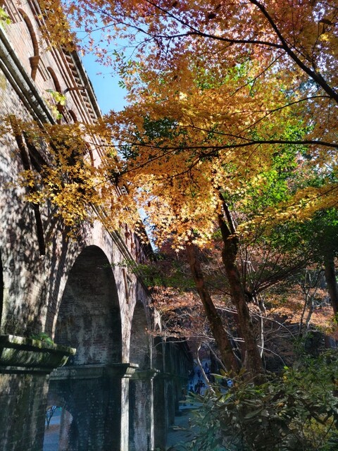 ほとんど南禅寺近くから撮った写真です。色とりどりの木々があり、全部真っ赤だったりするよりもかえって良かったです。