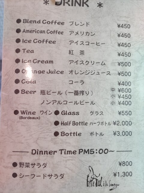 こちら、ドリンクとデザートのメニュー。そこまで高くはありません。