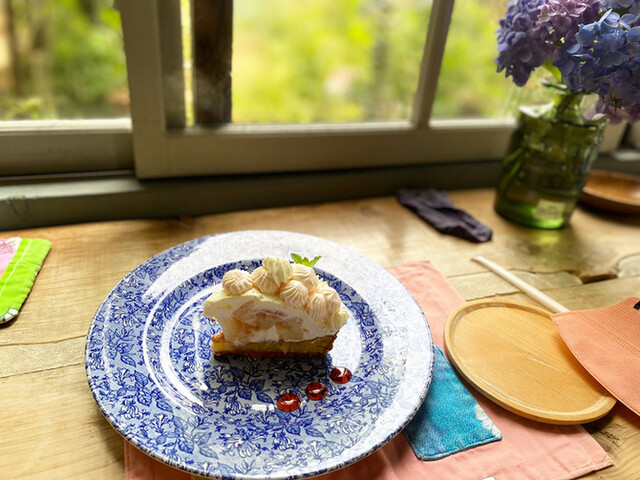 あっさりクリームのケーキに焼きたてのキッシュが美味しいです(๑⃙⃘•ㅅ•๑⃙⃘)♡"こまものやさんの味"なキッシュとケーキ。