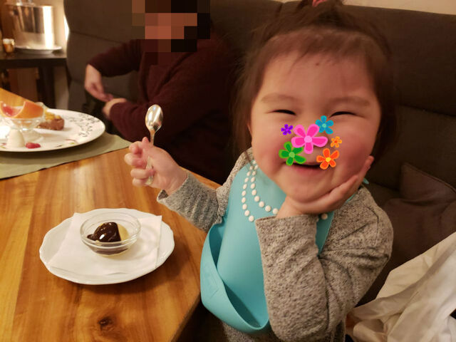マジか。二歳児にちゃんと席&カトラリーが用意されている…。
