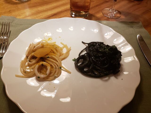 パスタは大人セレクトでカラスミとイカのオイルベース&イカスミ。