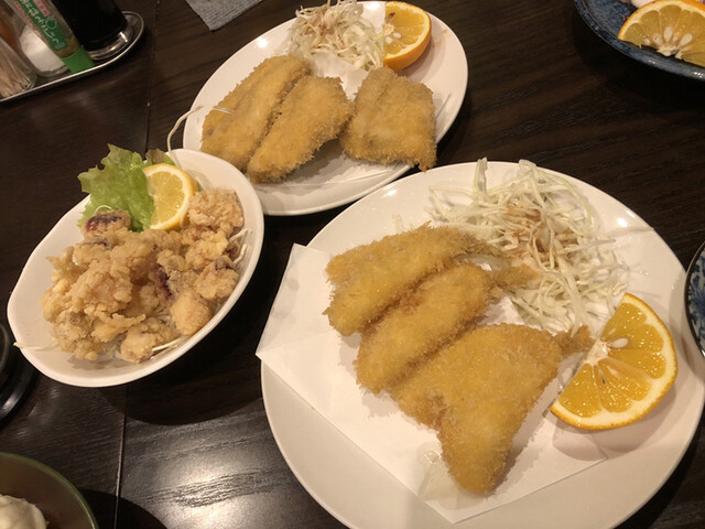 新鮮な刺身、アジフライ、キスフライ、タコの唐揚げなど、どれも絶品!