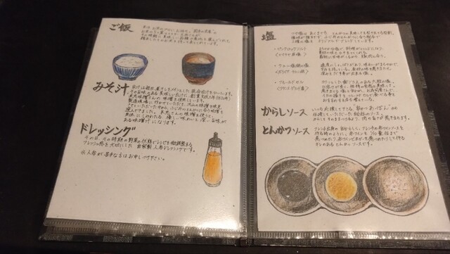 塩、からしソース、ソースがあるが、