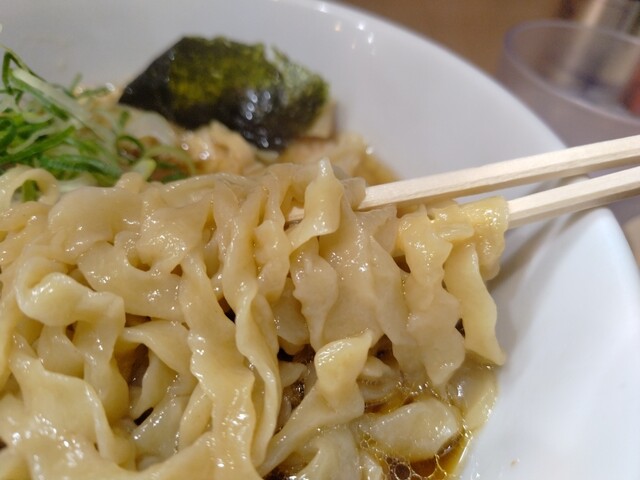 麺は、手打ちピロピロ中太麺!