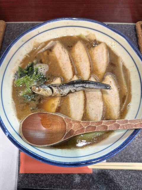 いざ着丼。存在感のある煮干し!トロトロ系豚ばらチャーシューも7枚程乗っております!食べ応え抜群。