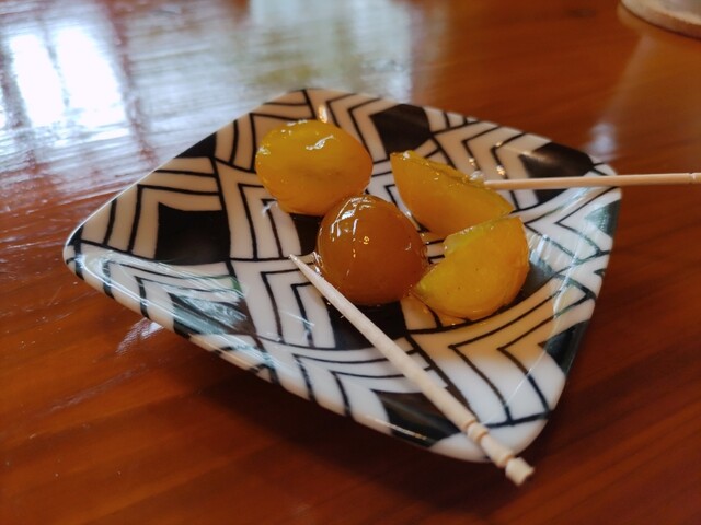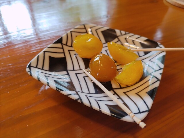 先日まで提供していた自家製シロップジュース用の甘く煮詰めたキンカンを