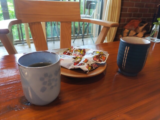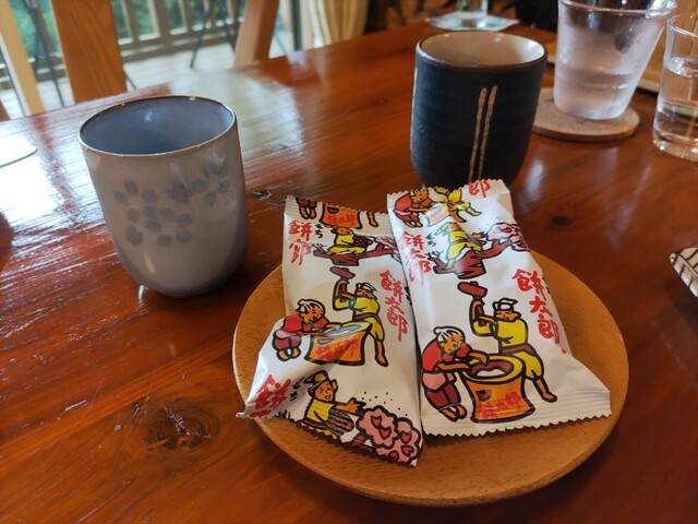 山北町の足柄茶のほうじ茶と、懐かしい駄菓子の「餅太郎」を提供してもらえましたよ~。