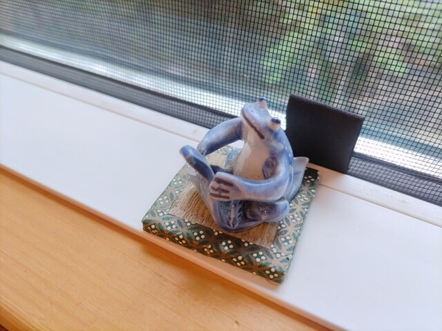 正面の窓は、青々としたモミジなどの木々の隙間から芦ノ湖を見下ろすことができます。