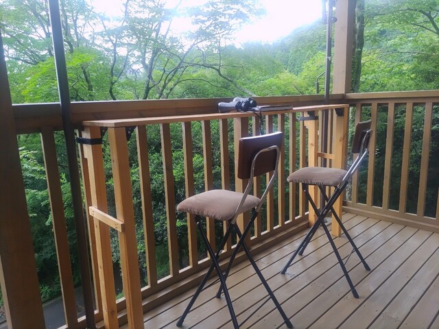 そんな景色を満喫できるウッドデッキへ、ハイテーブル&チェアーをセットしてくれて、