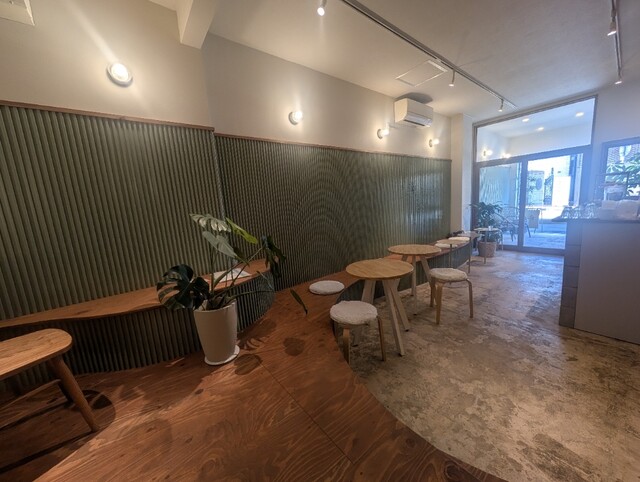 奥行きのある店内の突き当りは、木板によって小上がりのようなスペースになっていて、