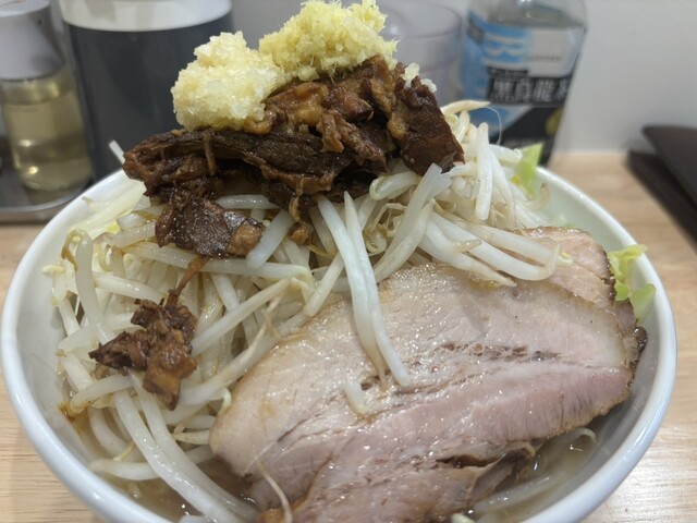 今年最後のラーメンは、限定の野菜炒めラーメンをチョイス。また豚軟骨もトッピング。