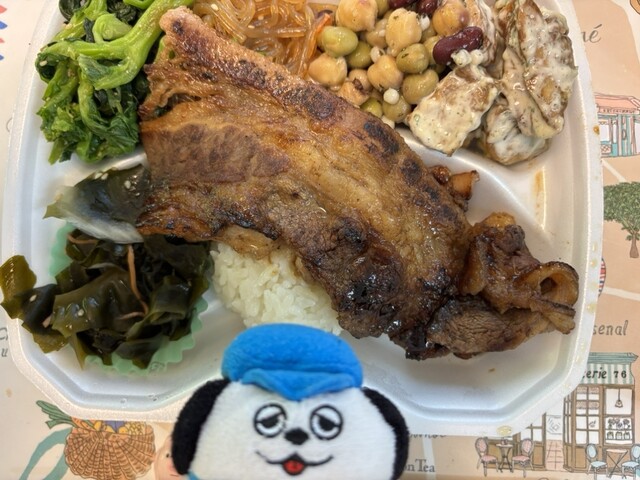 ヤミースペシャルには、チキン、ポーク、牛肉カルビと三種類のお肉に味が付いてご飯の上に載せてもらえます。久しぶりに食べましたが、もちろん美味しかったです。