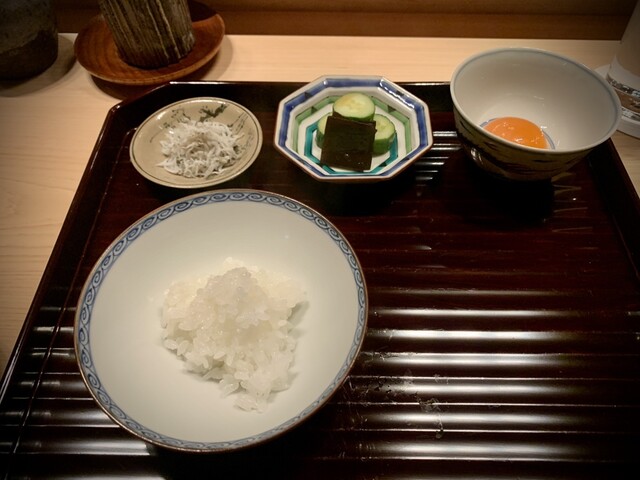 ◇卵かけご飯、しらすと香の物