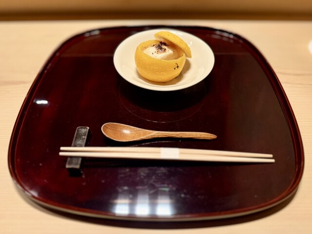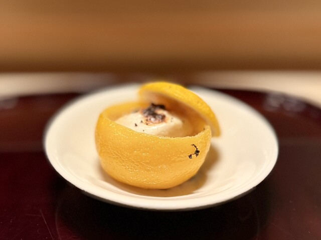 ◇柚須に入った河豚の白子と蓮根の蒸し寿司○