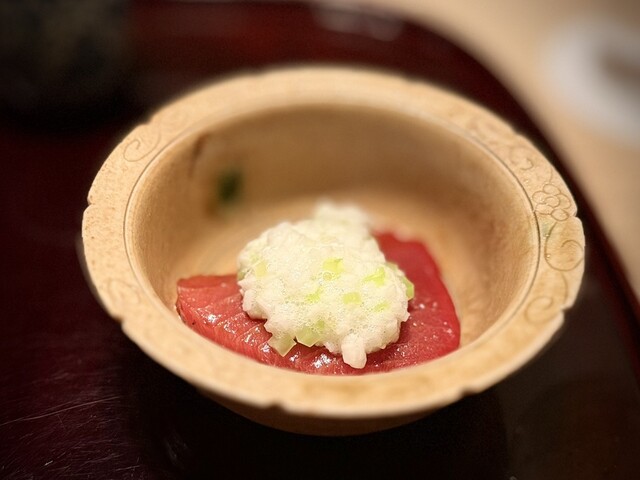 ◇三厩の赤身漬け、山芋、海苔○