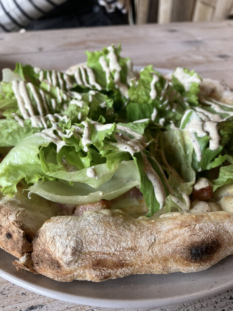 新鮮レタスタップリのあっつ熱ピザ ほんまにうまい