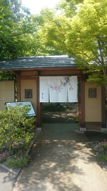 着くと広い駐車場があり、少し歩いて、店の門があり、そこをくぐると綺麗で広い庭がପ♡