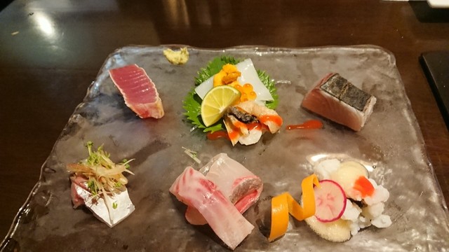 本マグロ、鰆、けんさきいか、たこ、あじ、鯛、西貝、ゆば刺し。でした。