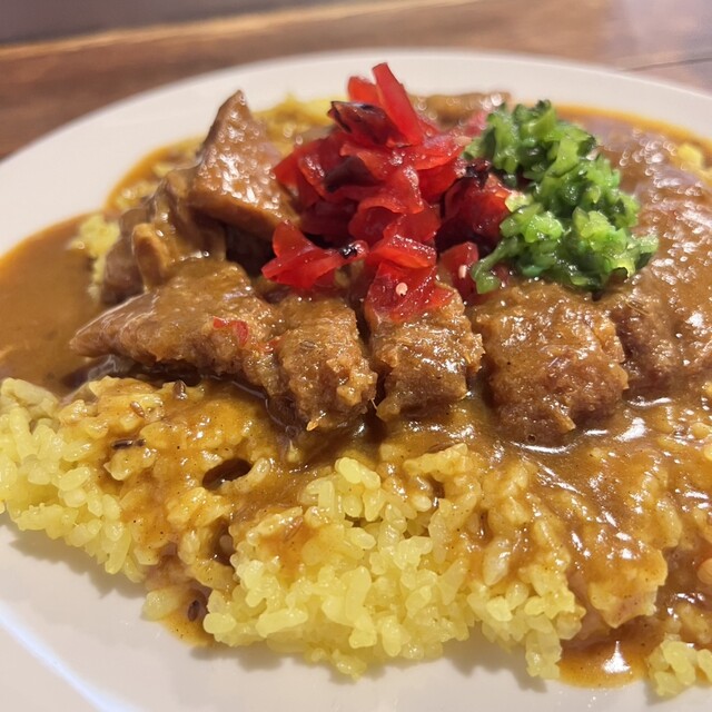 私はいつもの「カツカレー・ビーフ・中辛」、同僚も「カツカレー・野菜」。野菜はちょうどレンコンに変わったとのこと、それも美味しそうであった。