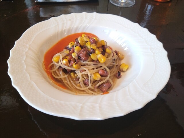 前菜、パスタ、メイン2種のコースをお願いしました。