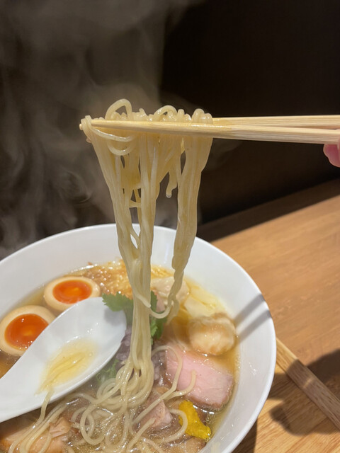 和から洋へ変化するスープとツルツルで啜り心地が良い平打ち麺とラーメンの枠を超えたトッピングが凄い塩らあめんでした。
